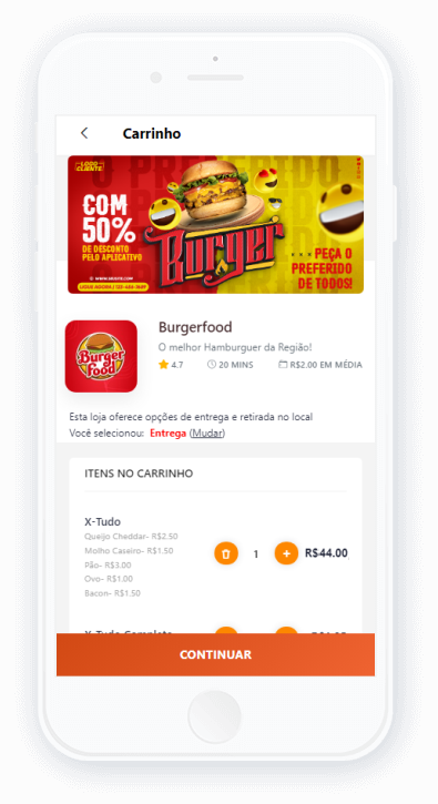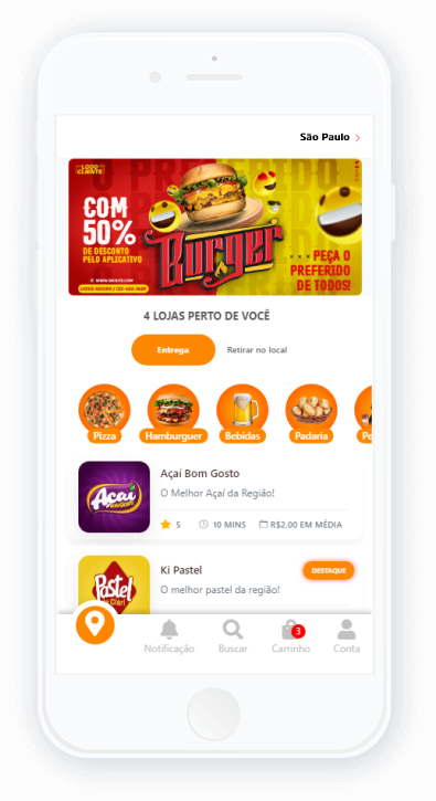 Em nosso App, você conecta sua loja a milhões de novos clientes, expande sua área de entrega e vende muito mais. Utilize nossas ferramentas de marketing para ter mais visibilidade e chegar a milhões de pessoas que amam pedir comida pelo app.